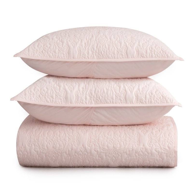 Queen Size 100-Percent Cotton 3-Piece Quilt Bedspread Set in Blush Pink