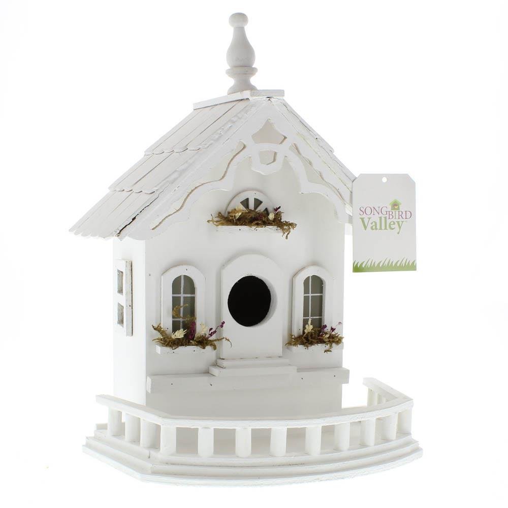 • Lovely little luxury villa with flower boxes and detailed wooden trim for feathered flyers overflows with Old World charm! Sturdy freestanding pole and base included.