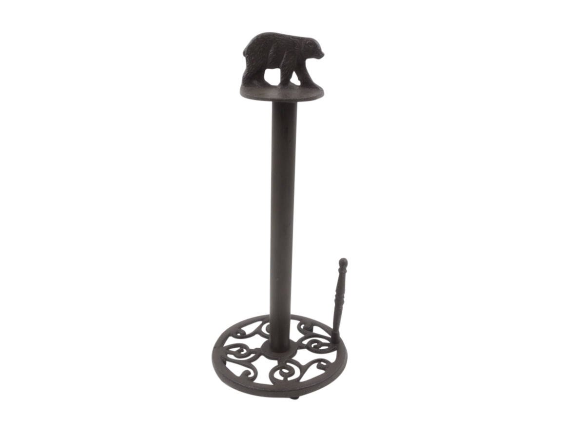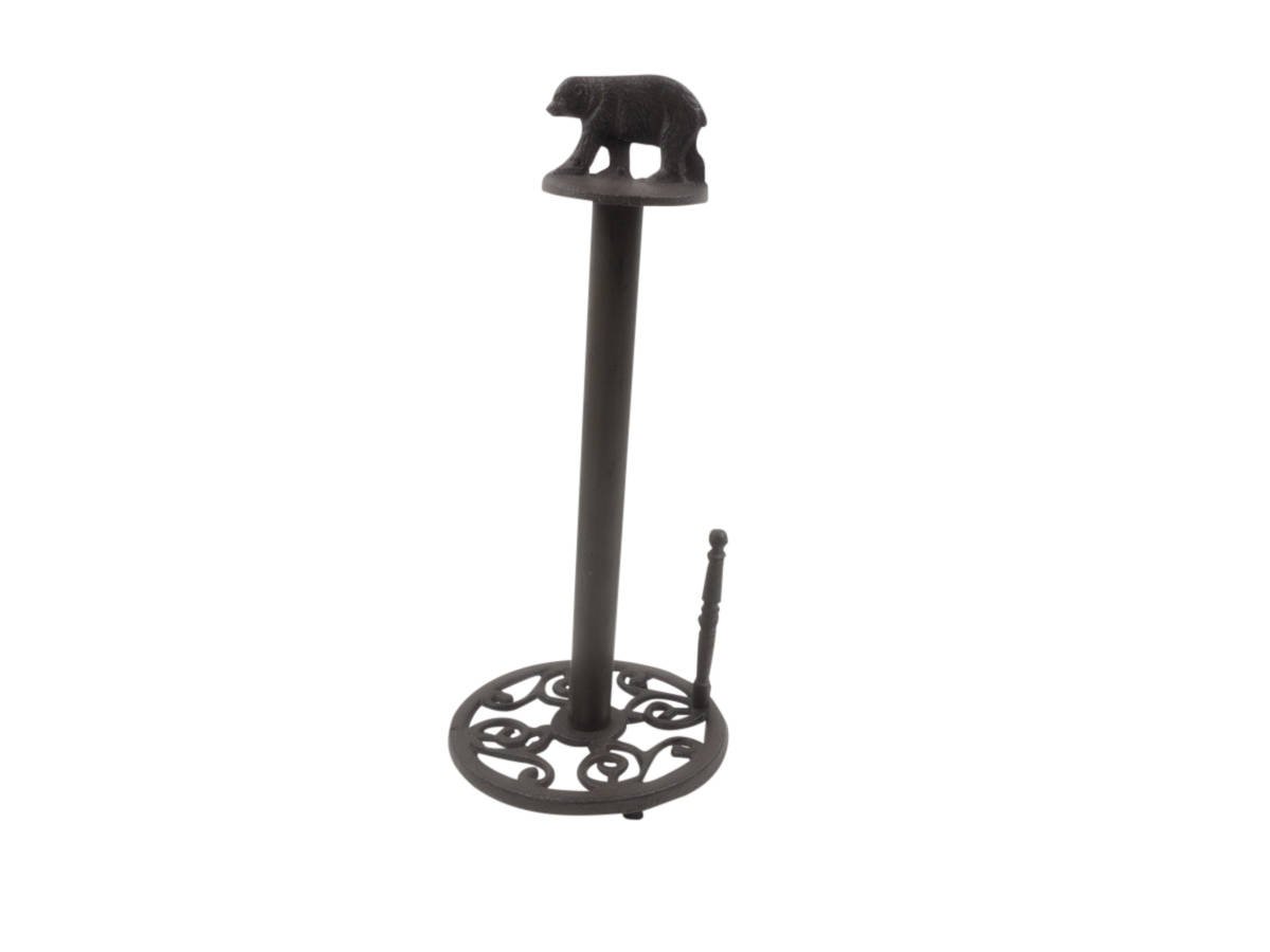 This Cast Iron Black Bear Kitchen Paper Towel Holder 16" is perfect for any country living kitchen. It adds charm to any small or big kitchen.It will impress your guests with rustic country living decor. Ideal for paper towels, this durable towel holder 16" is crafted from cast iron. Easily mountable, display this decorative holder to show those rustic country living decorations.