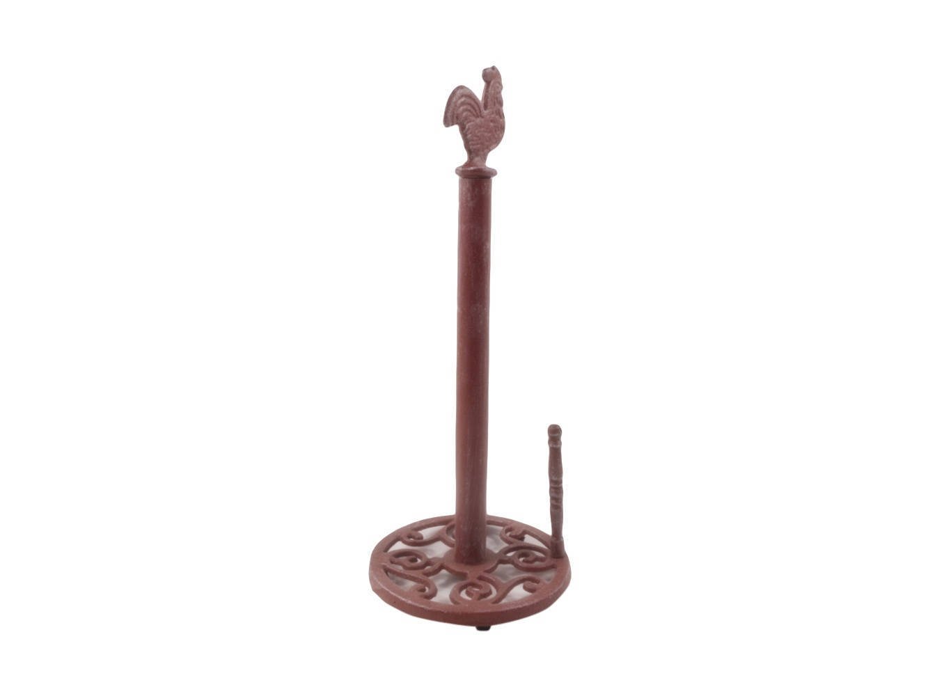 This Rustic Red Whitewashed Cast Iron Rooster Paper Towel Holder 15" is perfect for any country inspired kitchen. It adds charm to any country room, while impressing your guests with their substance and thoughtfulness. Ideal for paper towels, this durable towel holder 15" is crafted from cast iron. Easily mountable, display this decorative holder to show those who visit your home the affinity for the country lifestyle.