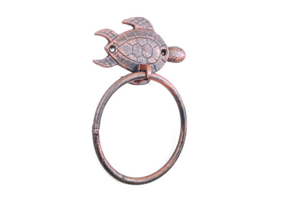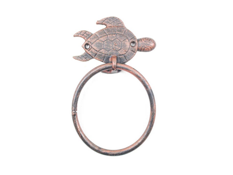 Rustic Copper Cast Iron Sea Turtle Towel Holder 7" Rustic Copper Cast Iron Sea Turtle Towel Holder 7"