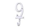 Whitewashed Cast Iron Number 9 Wall Hook 6""