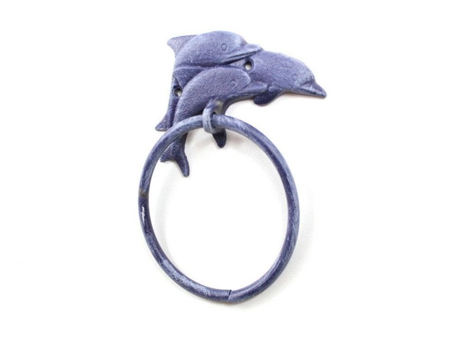 This Rustic Dark Blue Cast Iron Dolphins Towel Holder 7" is perfect for any sea life inspired bathroom or kitchen. It adds charm to any nautical room, while impressing your guests with their substance and thoughtfulness. Ideal for hanging towels, this durable towel holder 7" is crafted from cast iron. Easily mountable, display this decorative holder to show those who visit your home the affinity for the sea-faring lifestyle.