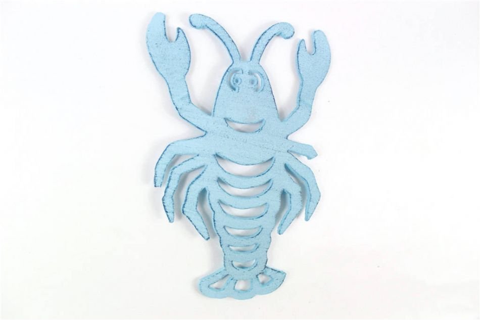 Rustic Dark Blue Whitewashed Cast Iron Lobster Trivet 11"" Rustic Dark Blue Whitewashed Cast Iron Lobster Trivet 11"" Rustic Dark Blue Whitewashed Cast Iron Lobster Trivet 11""