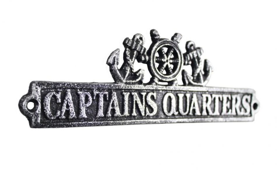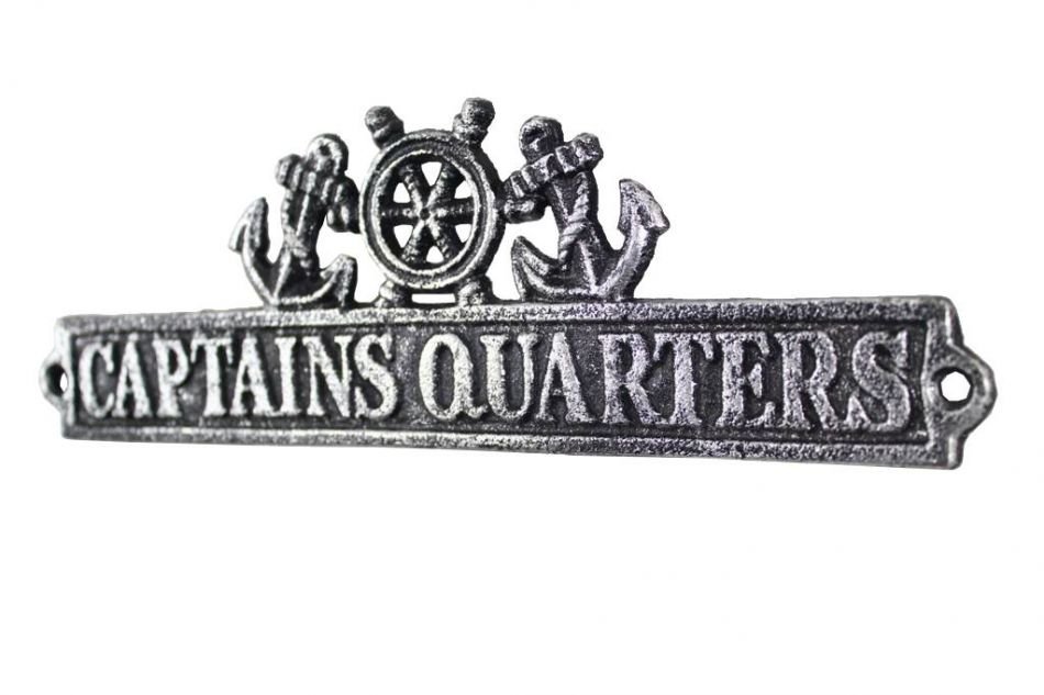 Antique Silver Cast Iron Captains Quarters Sign with Ship Wheel and Anchors 9"" Antique Silver Cast Iron Captains Quarters Sign with Ship Wheel and Anchors 9"" Antique Silver Cast Iron Captains Quarters Sign with Ship Wheel and Anchors 9""