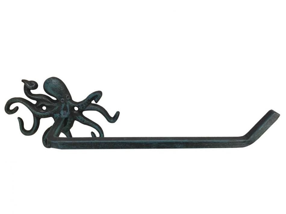 Seaworn Blue Cast Iron Octopus Toilet Paper Holder 11"" Seaworn Blue Cast Iron Octopus Toilet Paper Holder 11""