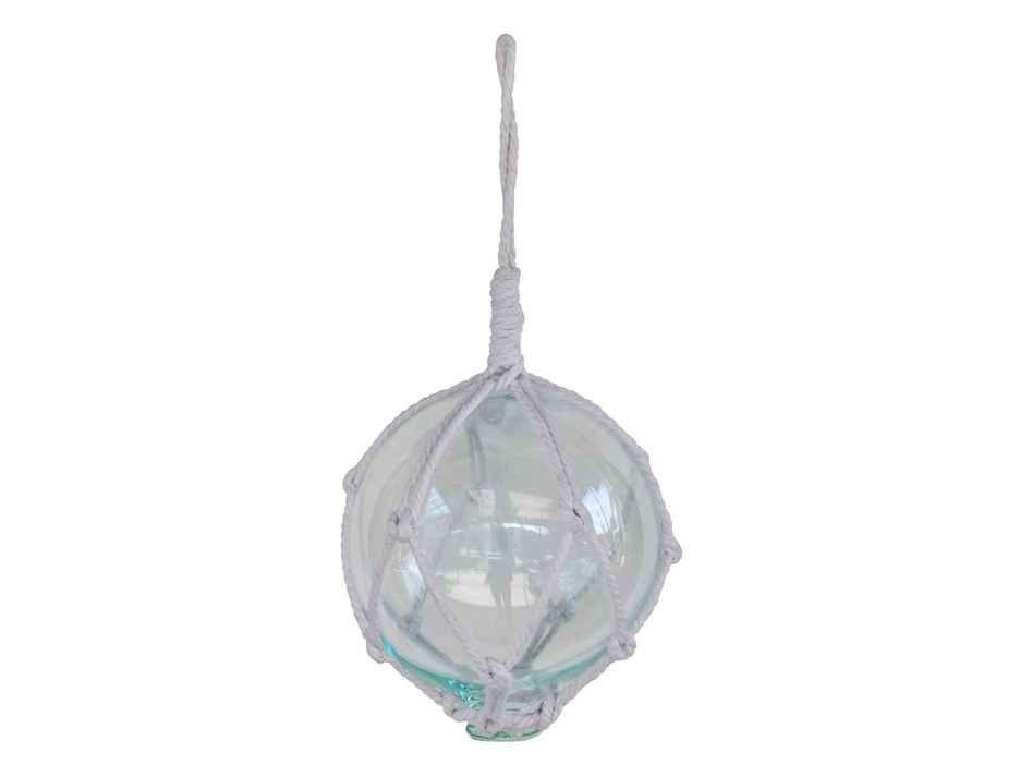 Clear Japanese Glass Ball Fishing Float With White Netting Decoration 6"" Clear Japanese Glass Ball Fishing Float With White Netting Decoration 6"" Clear Japanese Glass Ball Fishing Float With White Netting Decoration 6""