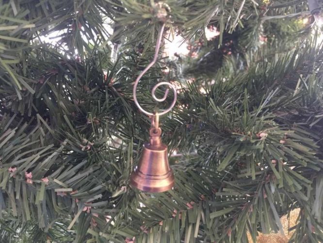 Add Christmas cheer to your walls with this Merry Christmas ornament sign. It is fashioned of wood with a corrugated metal bow and bell. To hang, use its circle hook.